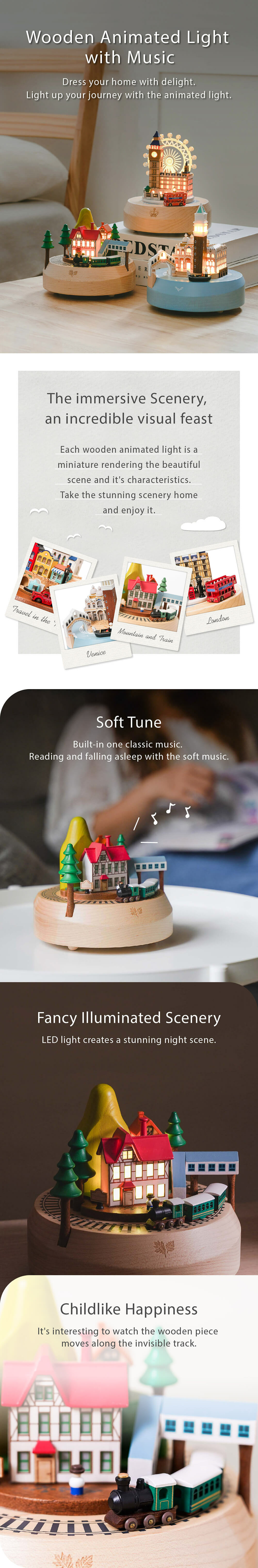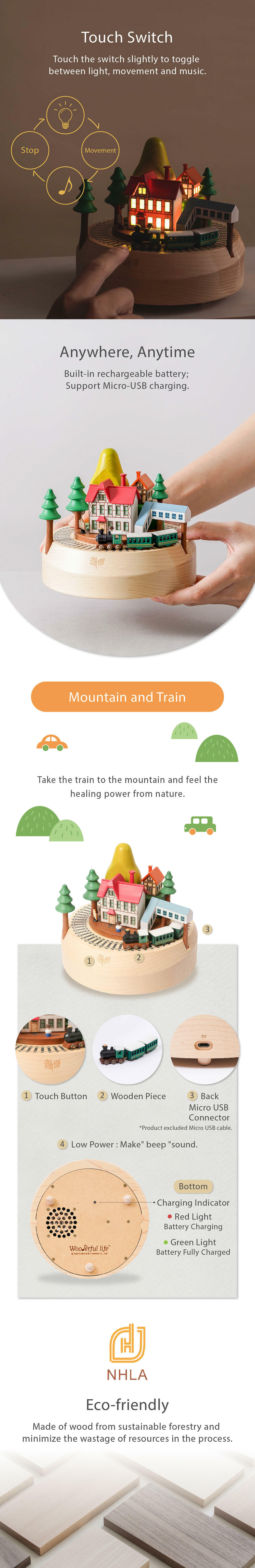 Wooden Animated light with Mus - Mountain and Train | 1256004 Wooderful life