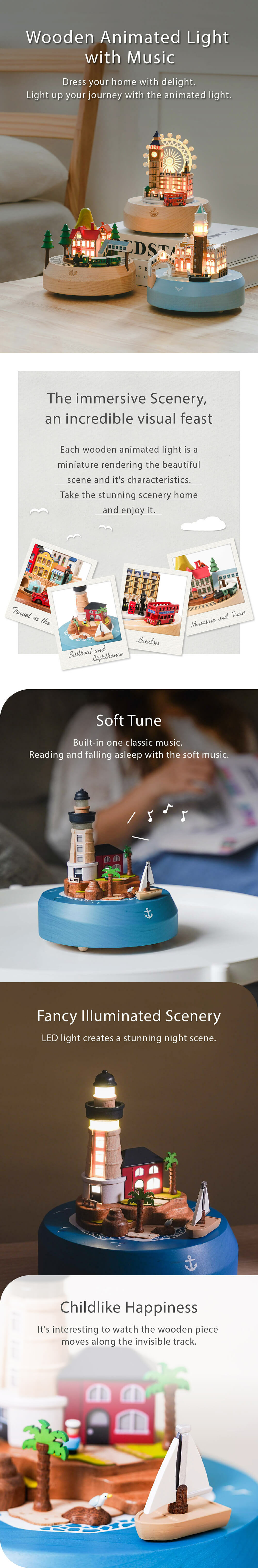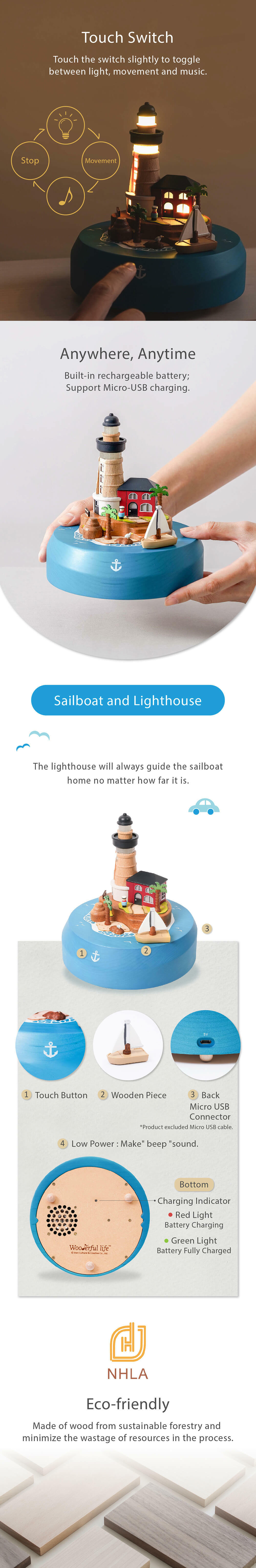 Wooden Animated light with Mus - Sailboat and Lighthouse | 1256002 Wooderful life