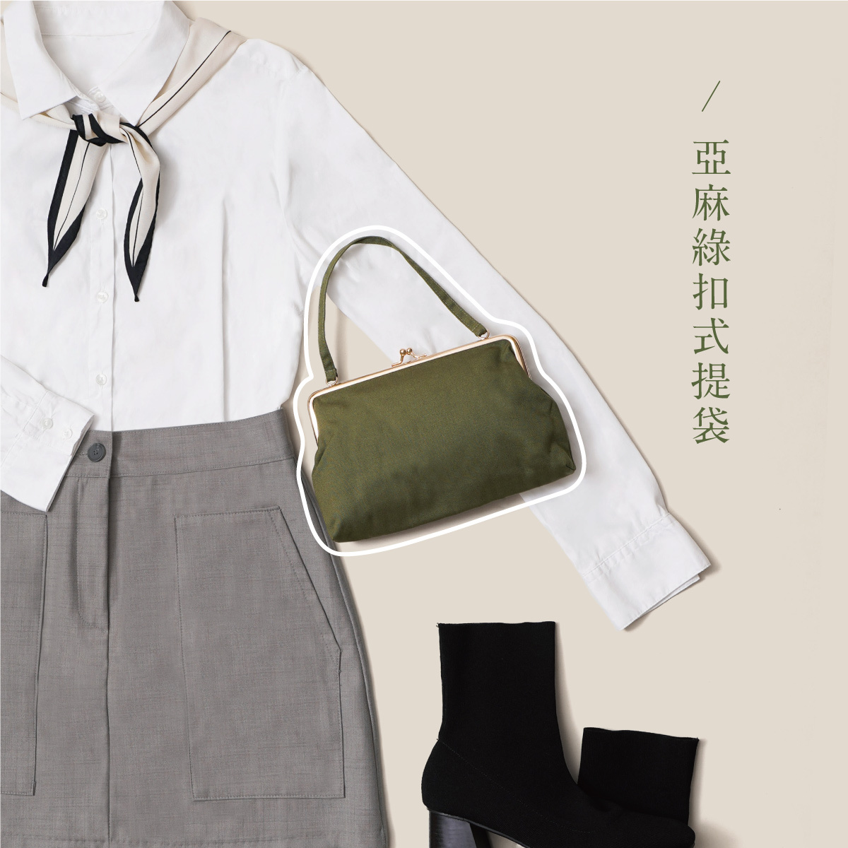 推薦手提亞麻綠金釦式提袋,更加俏麗可愛感,