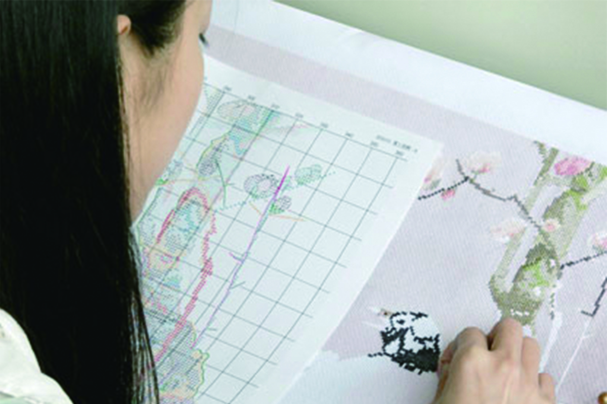 所以我們開始展開跟台灣藝術大學教授合作,將國畫的畫面編成十字繡符號。消費者可以按照這簡單易學的十字繡符號,居家能繡出大師的作品。抱著「以針代筆,以線潤色」精神,揣摩國畫水墨內斂的色彩與氣韻,呈現中華文化的經典之美。