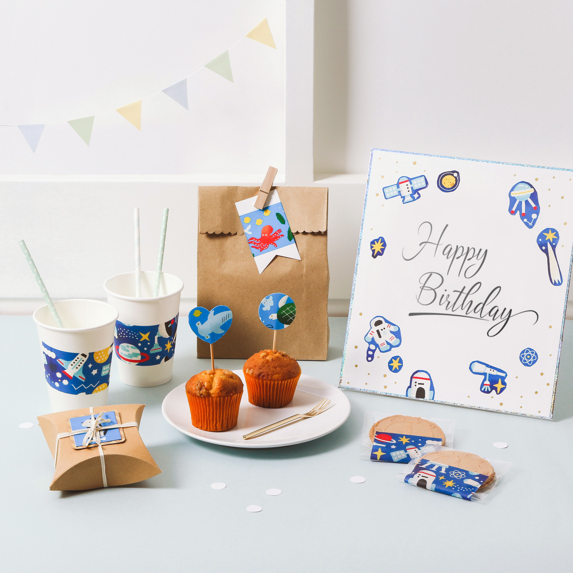 餅乾小點心都出爐吧! 通通裝進分裝袋,使用 50W童趣紙膠帶宇宙漫遊 黏一道,餅乾封口好了! 不僅添派對風格,而且食用方便還無毒環保喔 !