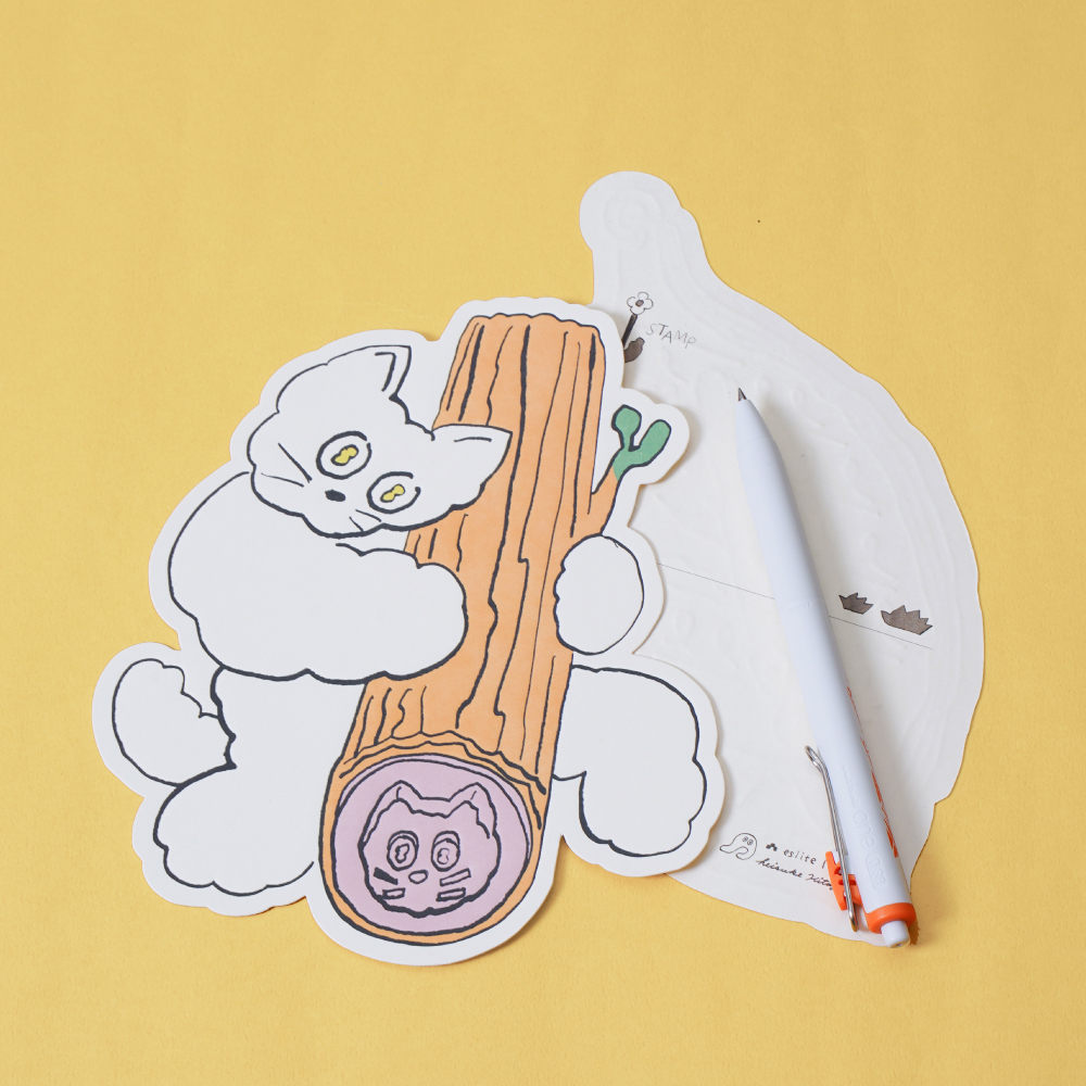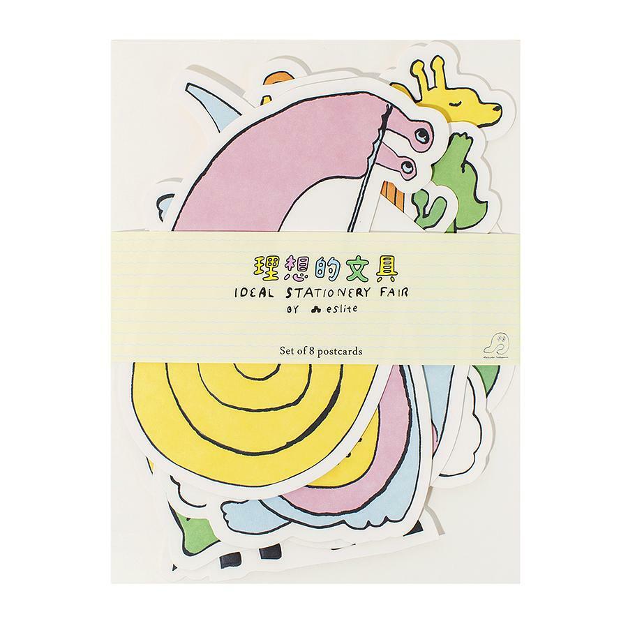 採明信片為底卡,搭配可愛的文具小動物造型,