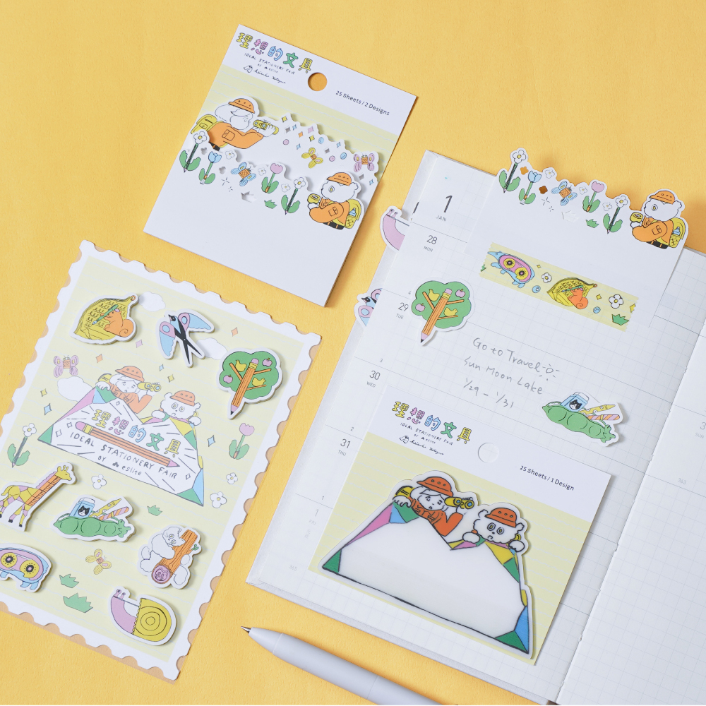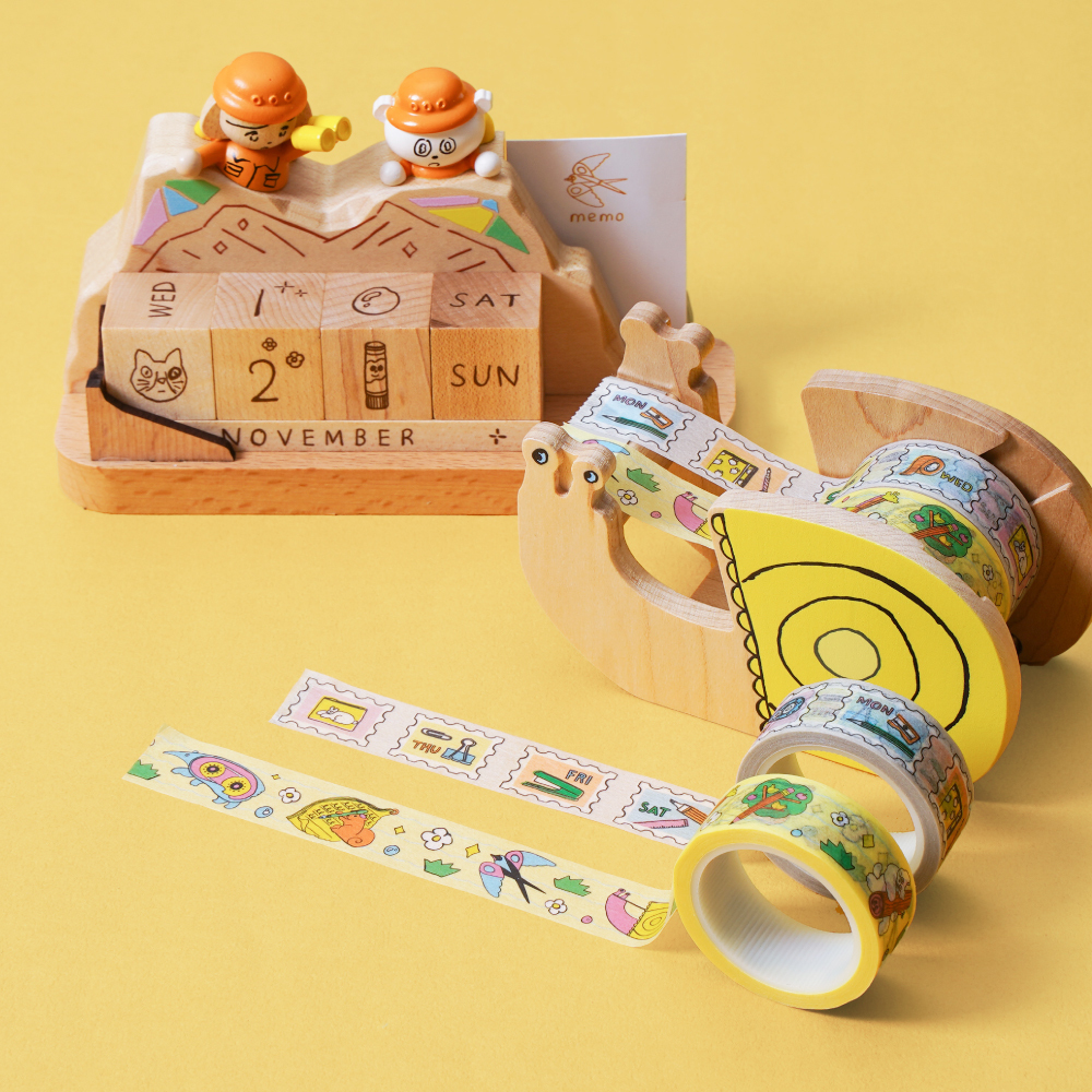 日本插畫大師北澤平祐的趣味插畫設計,融入知音文創獨有木製工藝與精細紙藝,推出一系列兼具實用與趣味的文具用品,包含萬年曆、便利貼、膠帶台…等限定商品,於誠品書店2021年「理想的文具」展出,帶你一秒進入充滿想像力的文具森林!