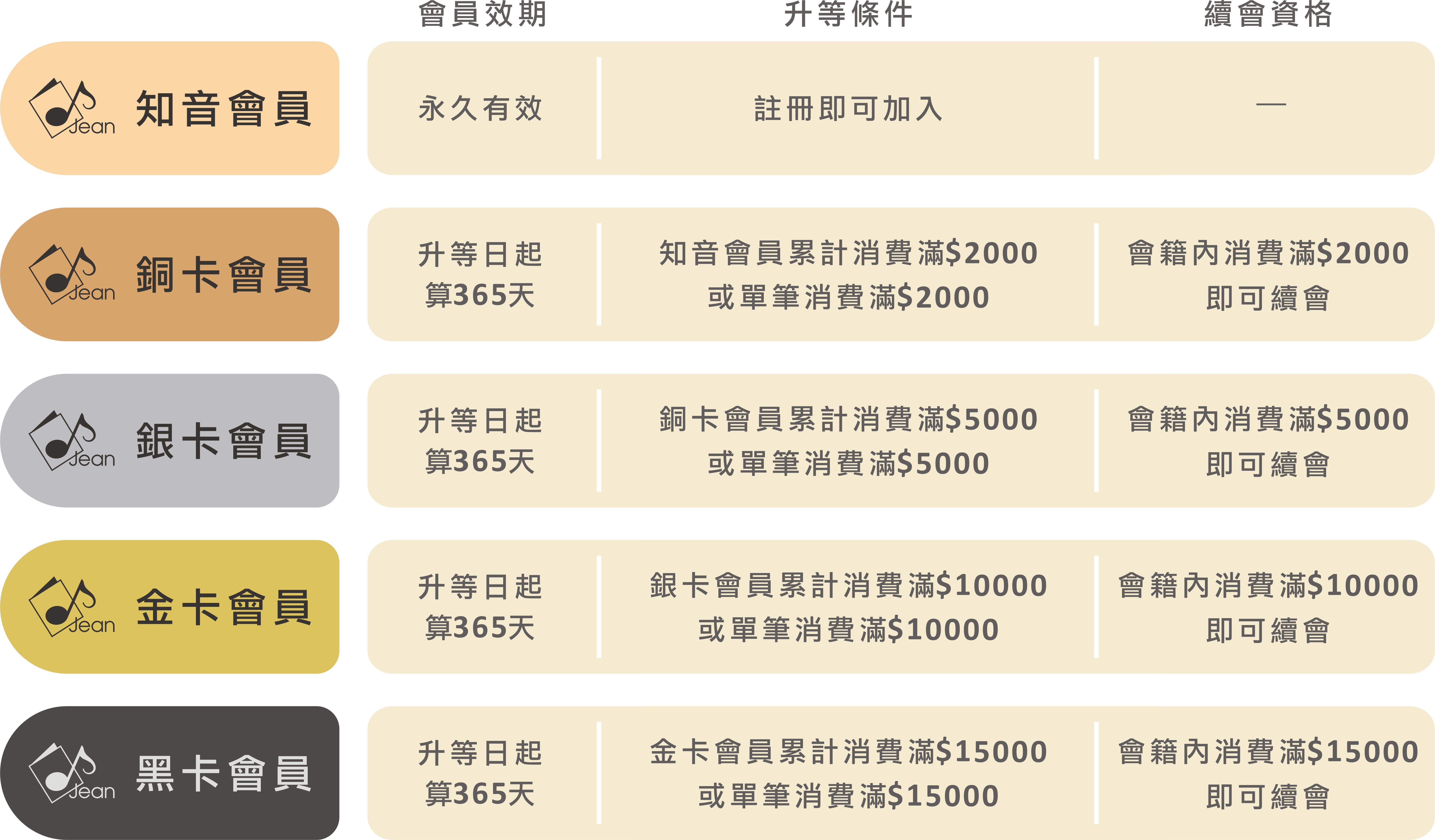 ▊ 除知音會員外,其餘等級會員期限為一年,期間消費金額符合會員制度,則於到期時將再延長一年,前一年度的累計消費金額將歸零。