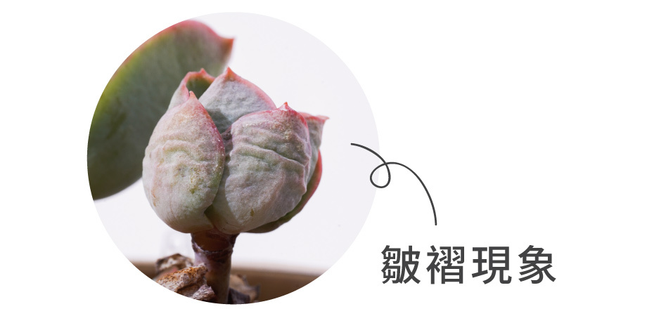 夏季控水期,若葉面出現皺褶現象,表示水分不夠,可增加給水量,再觀察幾日看是否恢復就可以了喔!