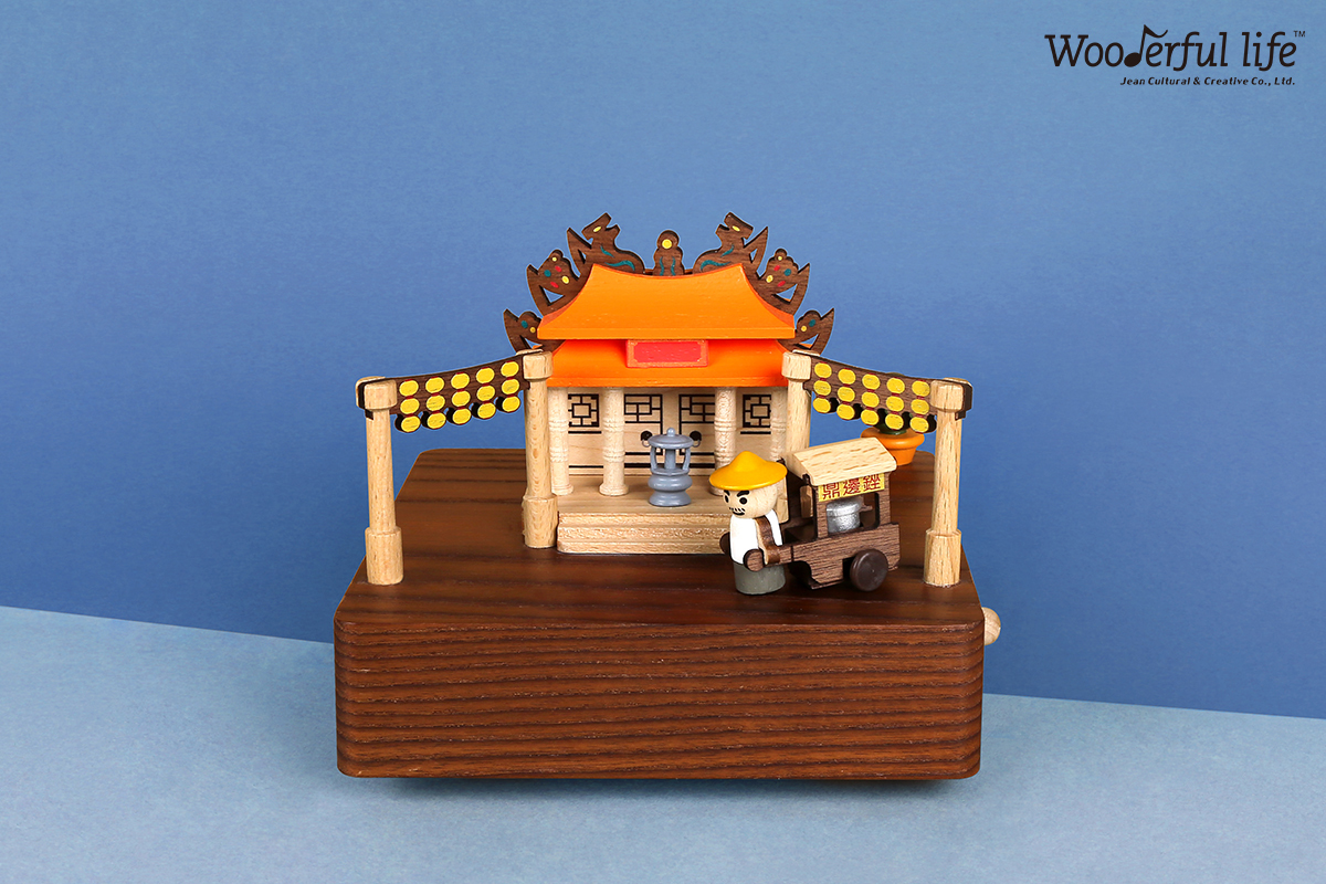 基隆廟口美食多,營養三明治、泡泡冰、鼎邊銼……熱鬧的基隆夜市,透過發條轉動迷人音律,與廟口攤販小車繞圈行走,形成趣味動態,將最道地的基隆味一一呈現。