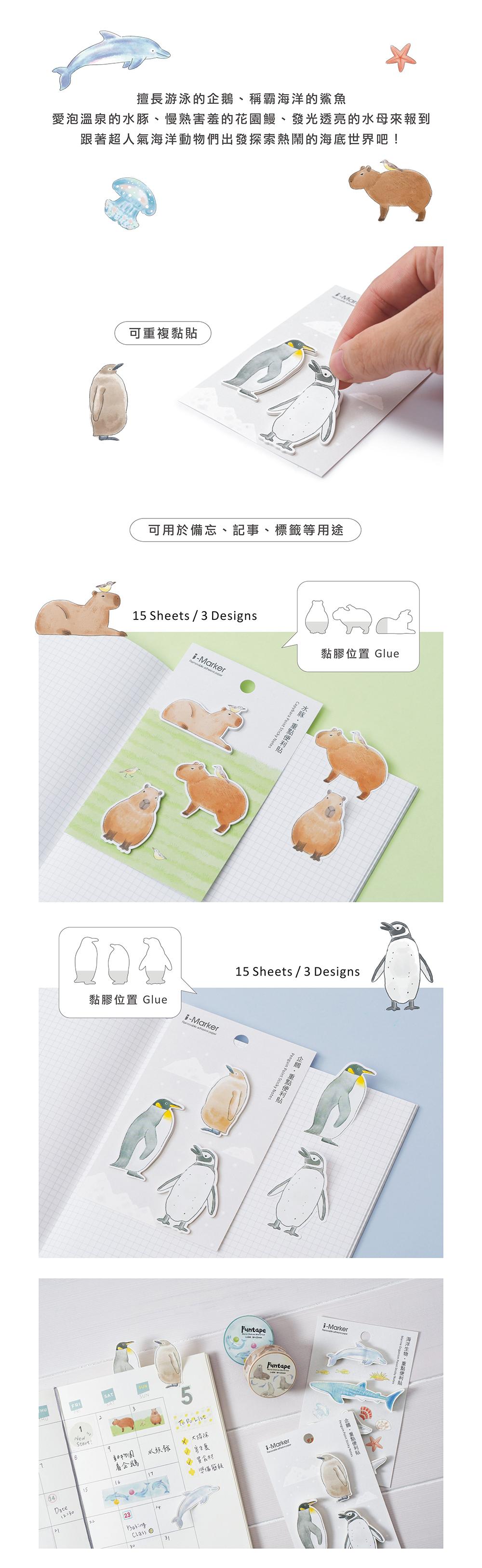海洋動物便利貼 企鵝/水豚|i-Marker