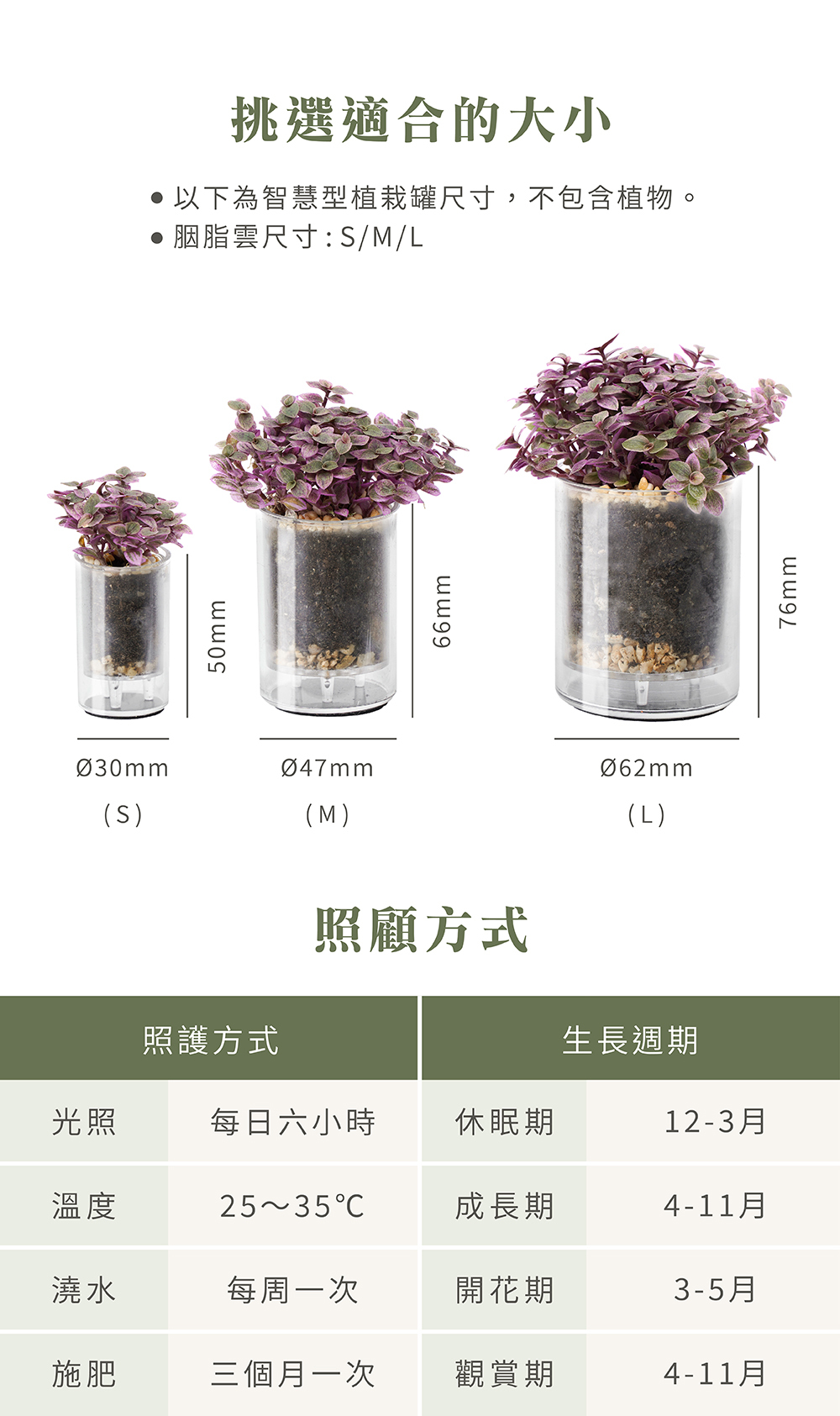 1.商品照片僅供示意,植物的樣貌、尺寸因生長過程受溫度、日照等季節變化影響會有所不同。