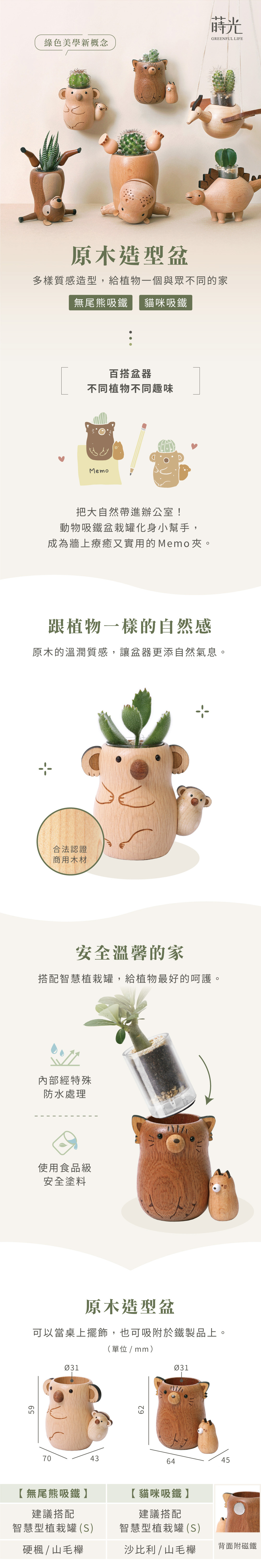 【無尾熊/貓咪】樸實原木 盆器 多肉盆栽罐| 蒔光
